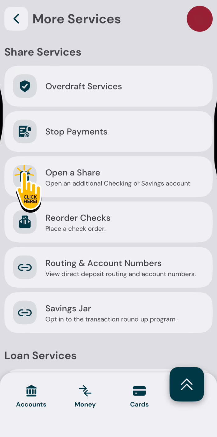 - Select OPEN A SHARE from the MORE SERVICES tab